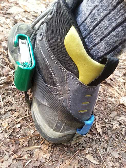 An issue has cropped up for me recently, regarding irritation to my Achilles tendon. I had been wearing some really sturdy Asolo leather hiking boots. However, the rear strap of the Pantin tends to ride up, digging in at the point where the hard leather and the softer cuff seam together. Using it in DdRT entailed a whole lot of foot pumping, and one day I noticed significant discomfort on the AT. I had to get another pair of shoes. It really doesn't bother me much now, but there is a thickening of my AT at that point where the strap dug in. I believe the sheath of the tendon is what's been injured, otherwise I really don't have any pain. However, I need to deal with this before it becomes so serious that I can't climb. I added a loop connecting the back strap of the ascender to the underfoot part, to keep it from riding up (see picture.) It's effective, but it keeps the ascender lower than than the ankle, which isn't good bio-mechanics. That ascender works really well right at the ankle. I'm continuing to work on this design problem, and would like to know if any of you have run into a similar problem.