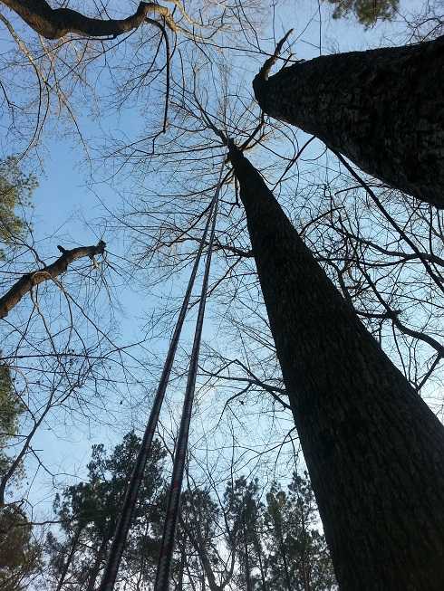 The beautiful weather has inspired me to climb lately. Here's a couple of pictures from a recent adventure in a tulip tree in the woods nearby, at about 80'. I think I'm going to refrain from climbing my beech trees soon. I don't want to damage them while they're in a tender growth phase. There are also some interesting oaks close by.