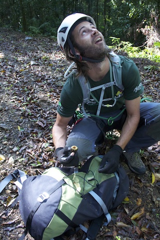 As I was preparing for my ascent a fig whistled past my head and exploded on my pack, my helmet was not