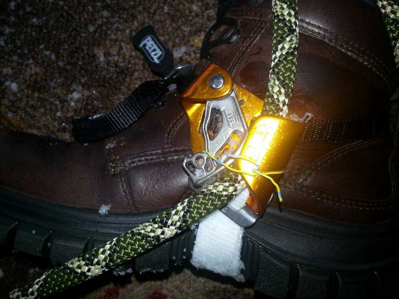 If you stick a piece of electrical wire (or even a twist tie, but those rust) through the hole and around the rope in the petzl pantin, the rope won't get unclipped with every step. It works perfectly.